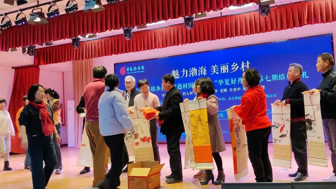 此次活动受到了渤海镇各村代表的热烈欢迎。在活动现场,21个村民代表接受了捐赠。这些研山书画院画家们亲手绘制的精美年历和春联,不仅具有实用价值,更是一种文化的传承和祝福。收到礼物的村代表们纷纷表示,他们会将这些文化礼物分享给更多的村民,让大家一起感受传统文化的魅力。