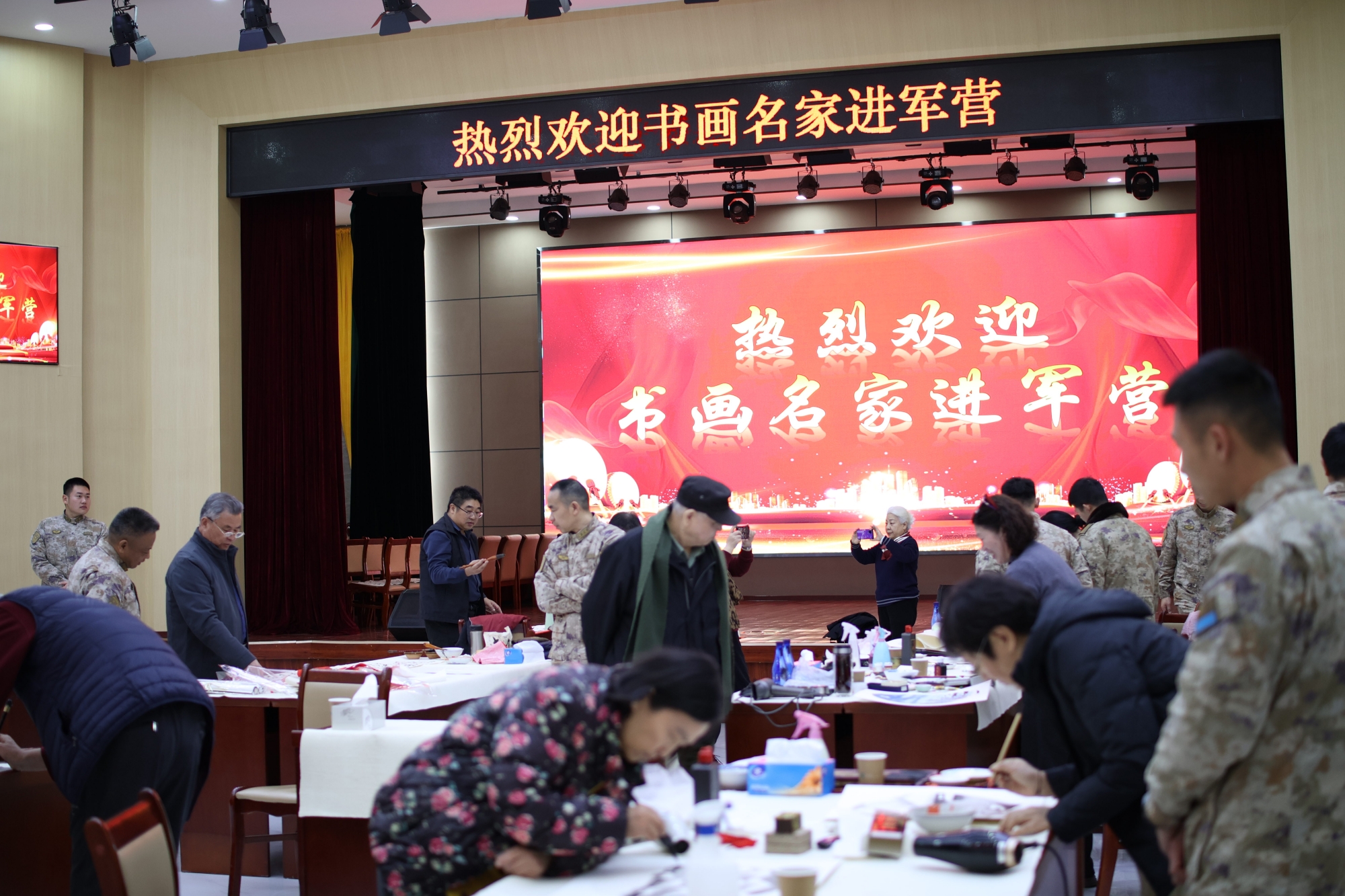 活动持续一天,共创作书画作品百余幅,全部赠予部队收藏。此次活动以书画为纽带,加深了军民鱼水情,也为即将到来的新年增添了浓厚的文化气息与温馨氛围。